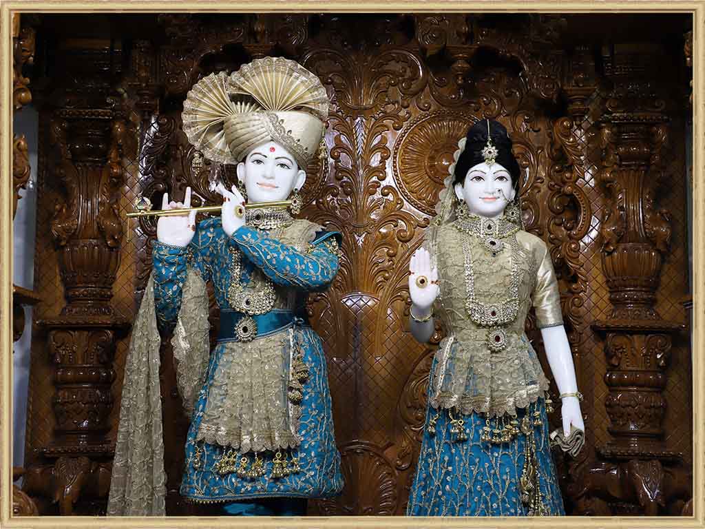 મંદિરમાં ઇષ્ટદેવ શ્રી અક્ષરપુરુષોત્તમ મહરાજની સાથે શ્રી રાધા કૃષ્ણદેવ, ધામ-ધામી અને મુક્ત, શ્રી ઘનશ્યામ મહરાજ, શ્રી હનુમાનજી અને શ્રી ગણપતિજીની મૂર્તિઓનાં પણ દિવ્ય દર્શન થાય છે.