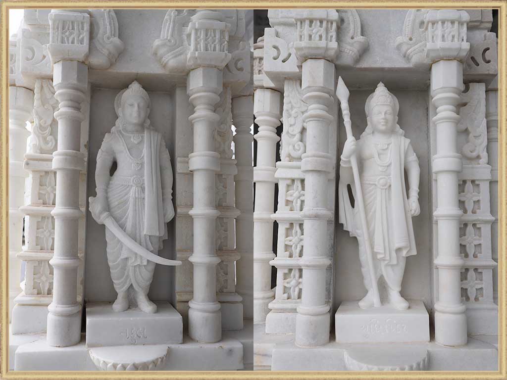 આરસમાં Inlay દ્વારા કોતરણી કરીને મંદિરની બહારની દીવાલો પર તપસ્વી નીલકંઠવર્ણી તથા સંગીતમય પરમહંસોની મૂર્તિનાં અલૌકિક દર્શન થાય છે તો ભાતભાતની Inlay રચનાઓ દ્વારા સુશોભિત મંદિરની Flooring અહોભાવ પ્રેરે છે.