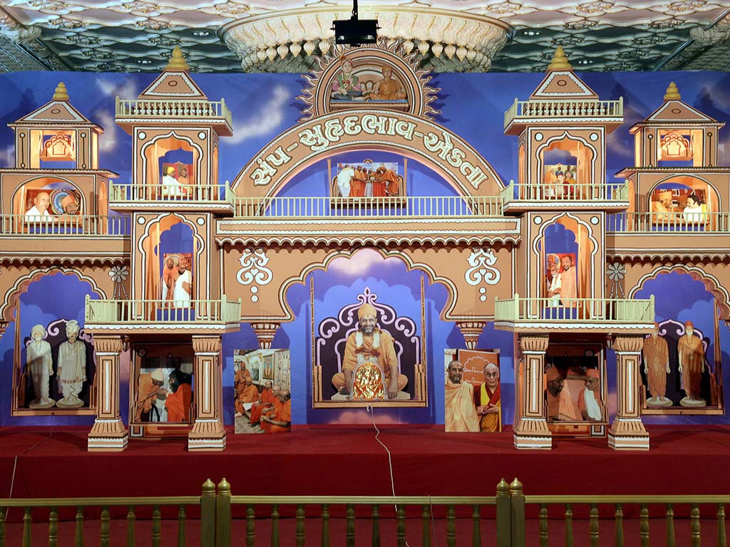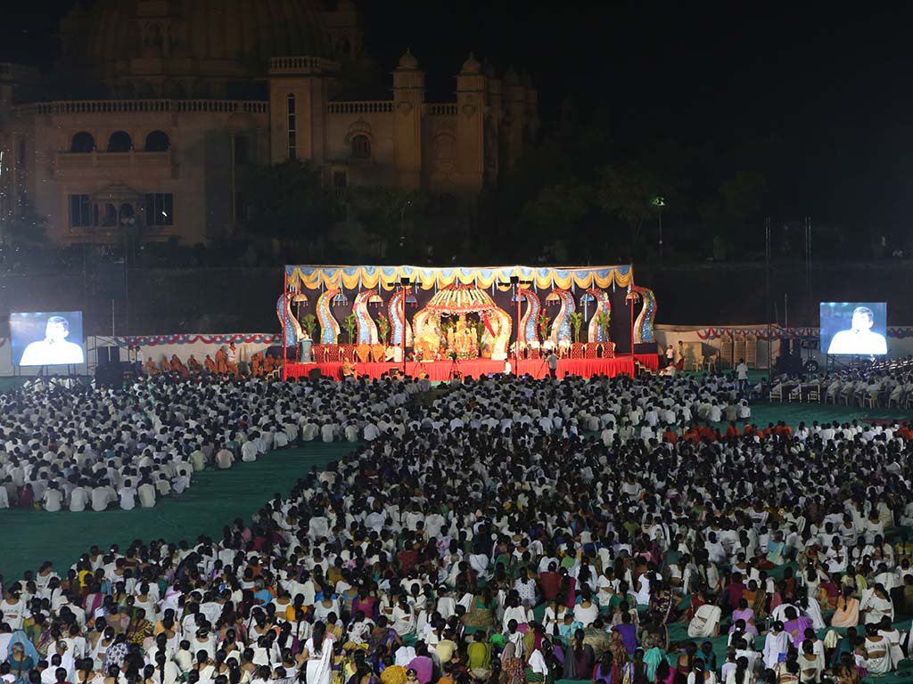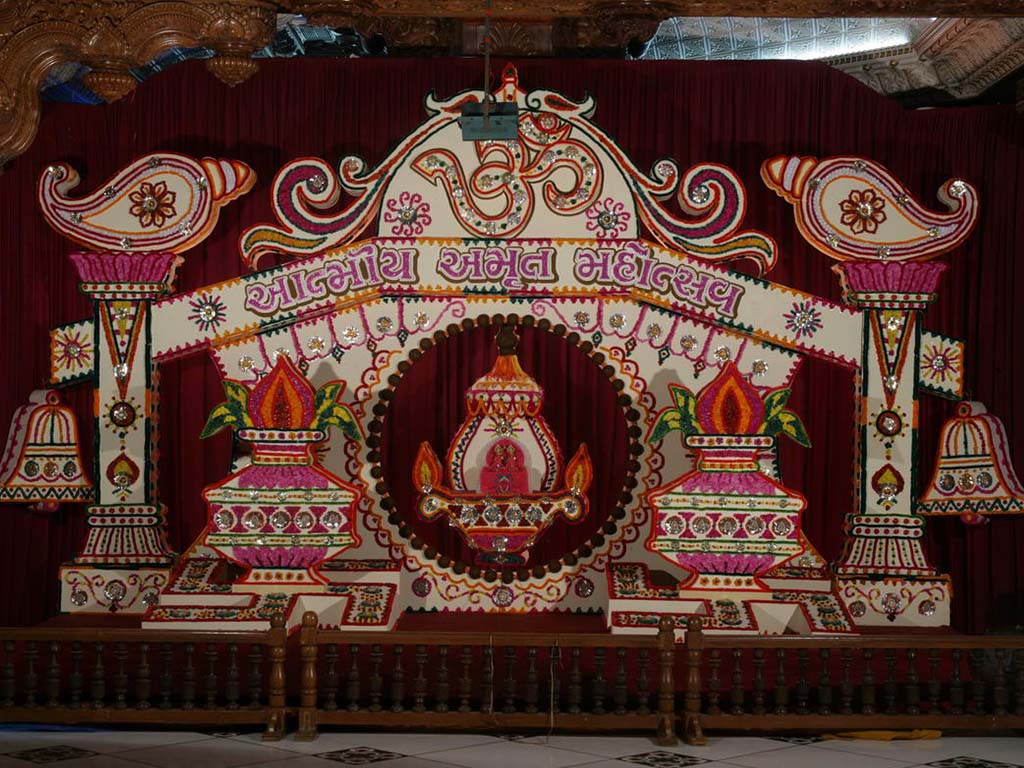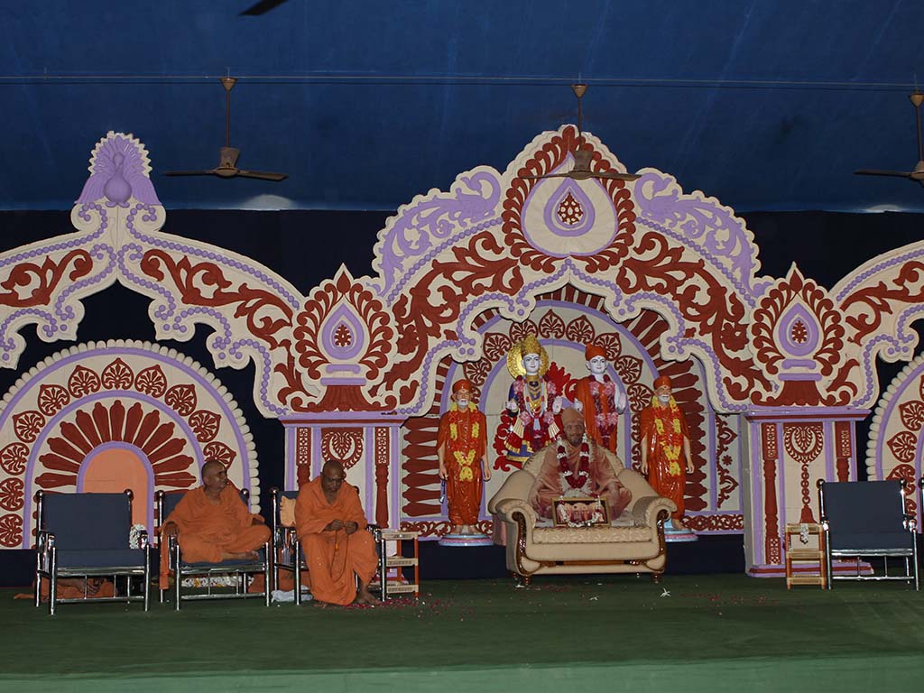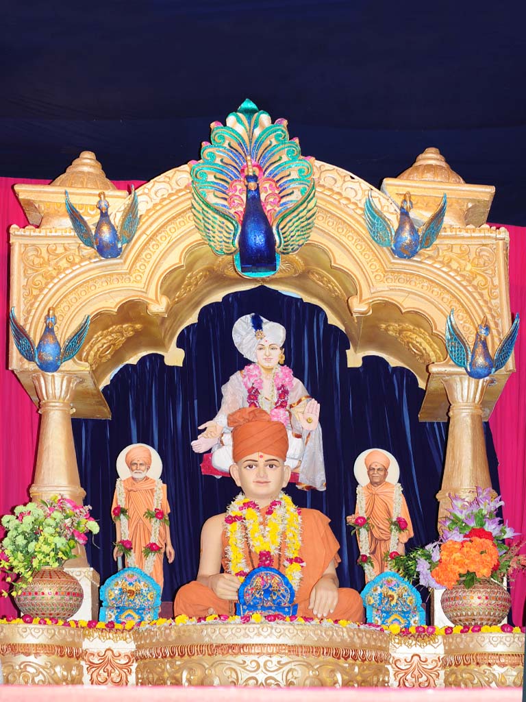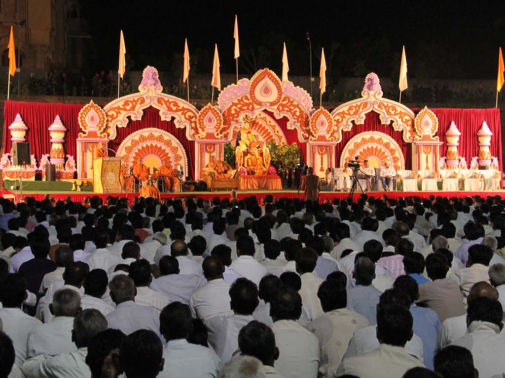 On this auspicious day nearly 20,000 devotees get darshan, blessing and prasad every year. The day was celebrated at night. P.P.Swamiji, Saints and devotees offered Arti five times to Lord and Gunatitanand Swami. Thus they pay their homage for Gunatitanandswami