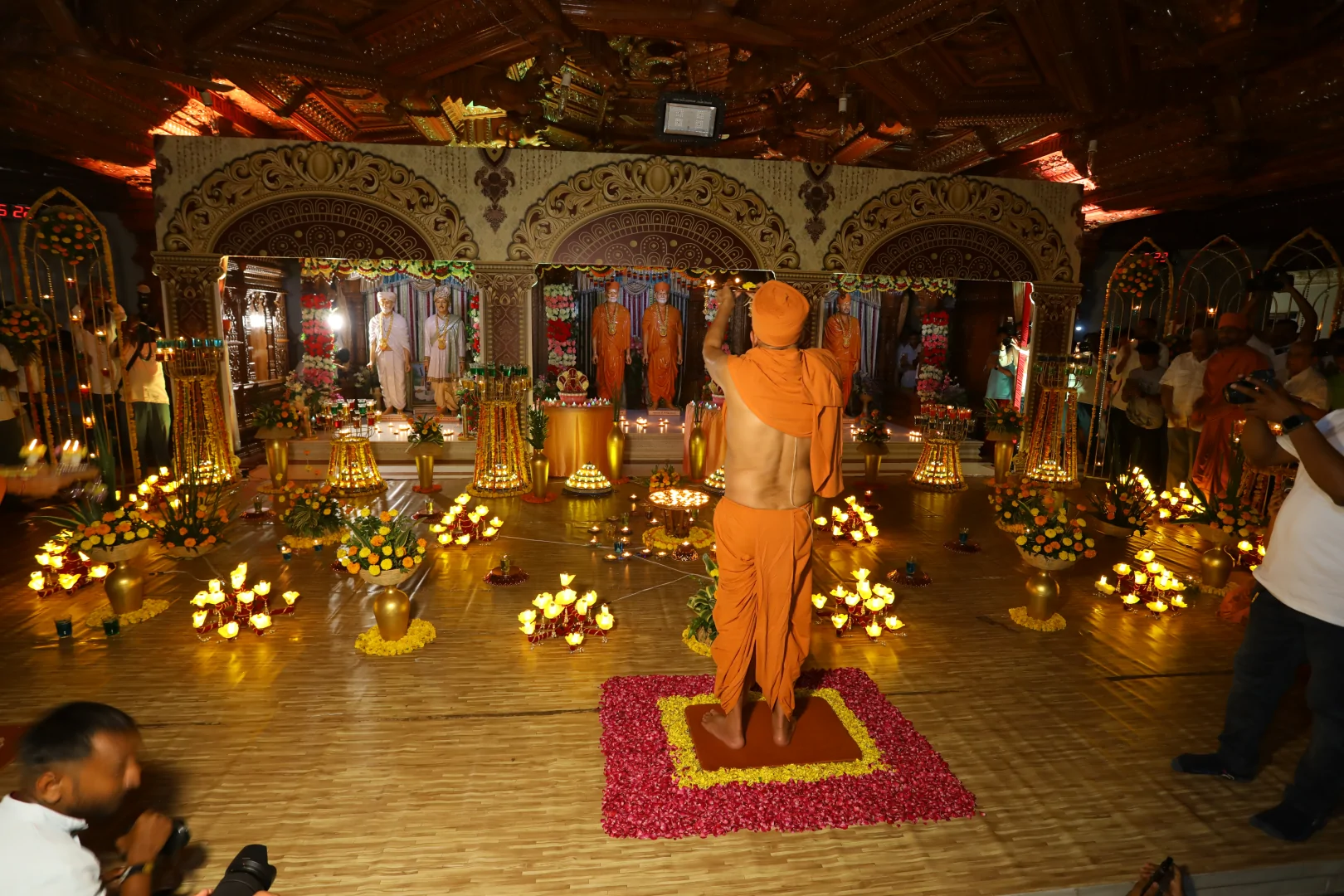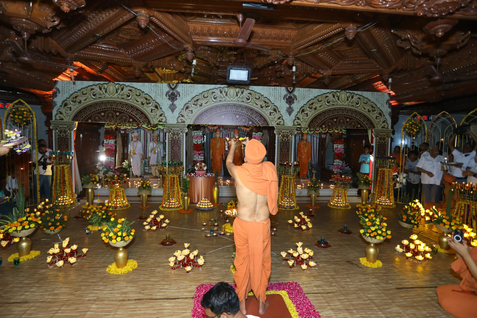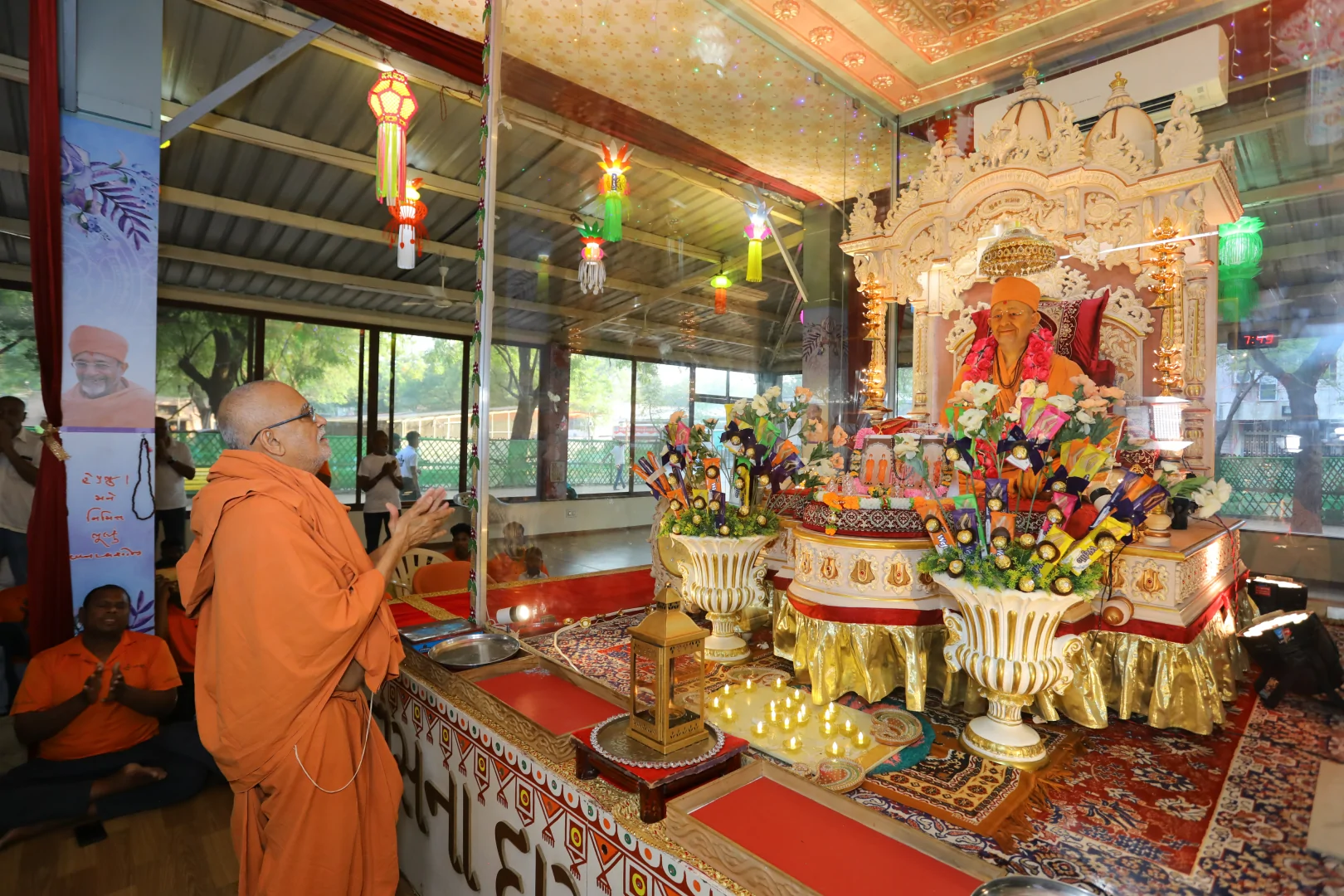 On this auspicious day nearly 20,000 devotees get darshan, blessing and prasad every year. The day was celebrated at night. P.P.Swamiji, Saints and devotees offered Arti five times to Lord and Gunatitanand Swami. Thus they pay their homage for Gunatitanandswami