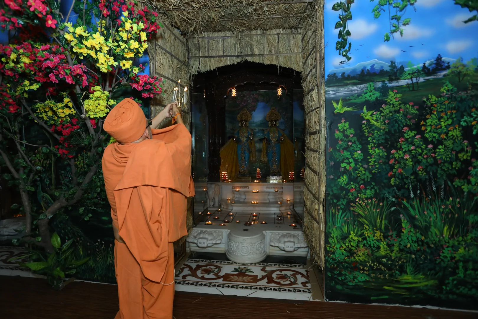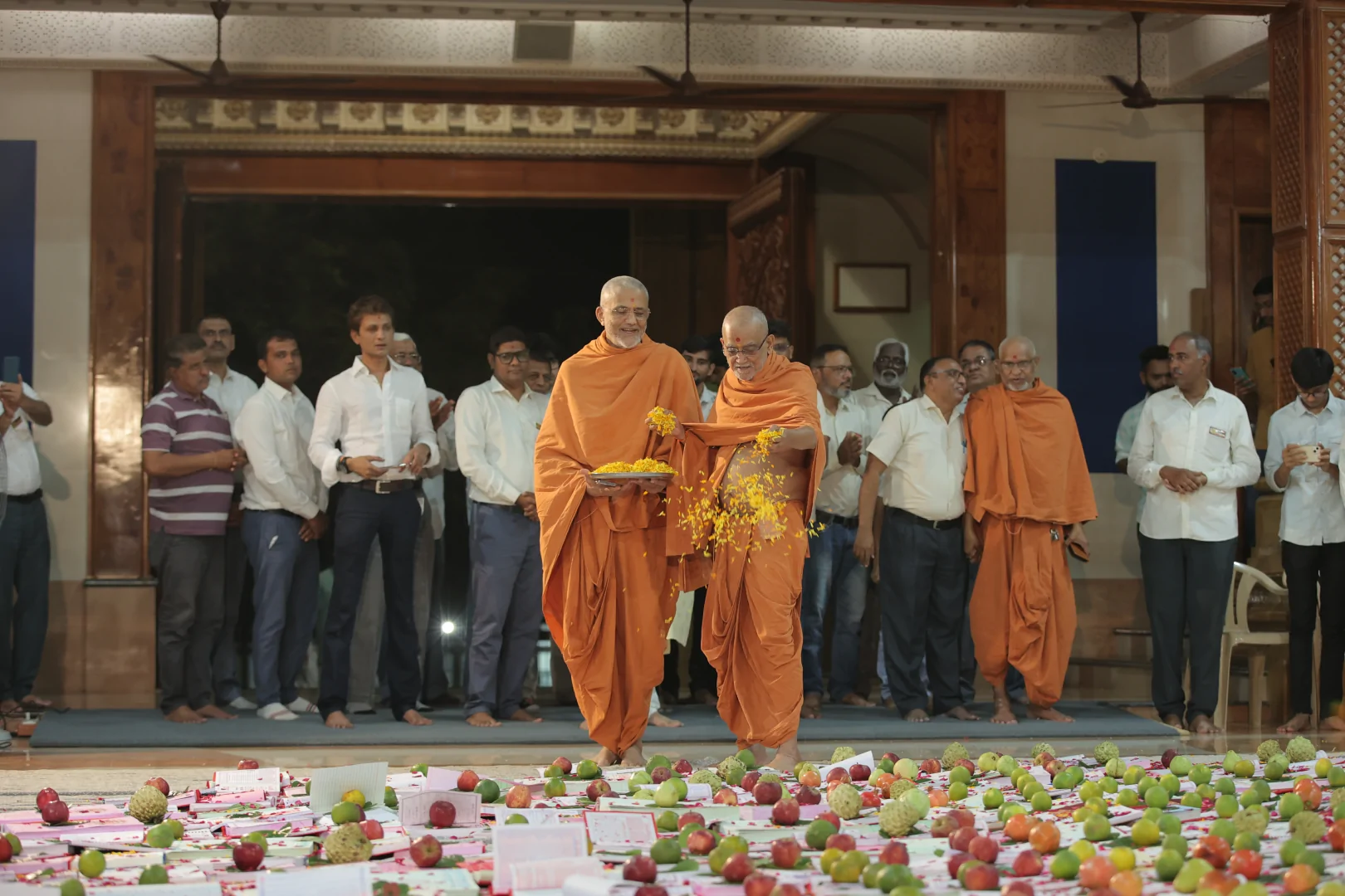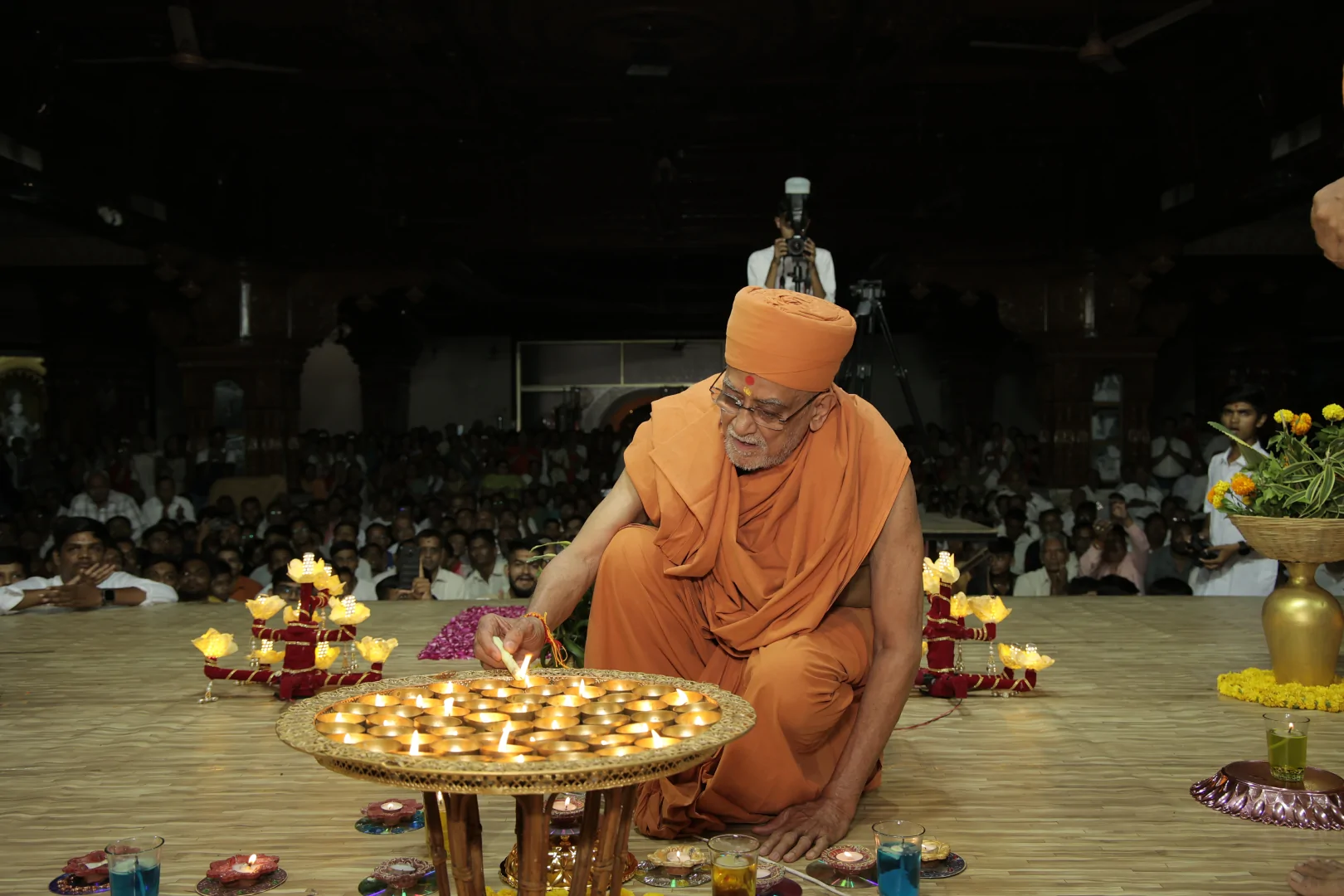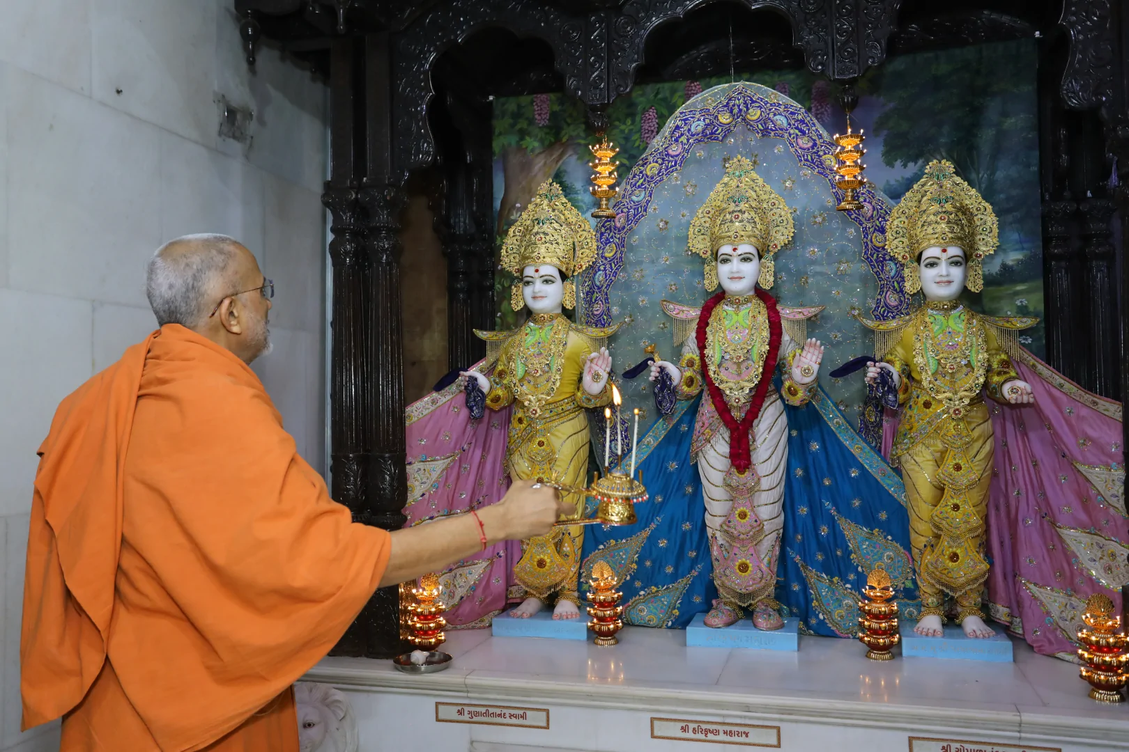 On this auspicious day nearly 20,000 devotees get darshan, blessing and prasad every year. The day was celebrated at night. P.P.Swamiji, Saints and devotees offered Arti five times to Lord and Gunatitanand Swami. Thus they pay their homage for Gunatitanandswami