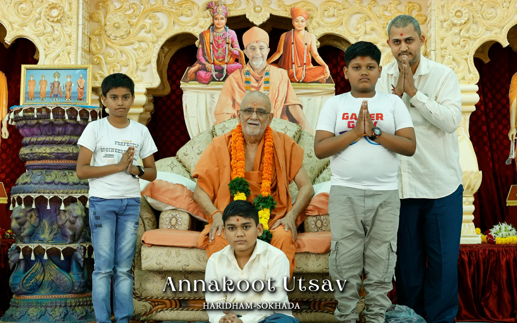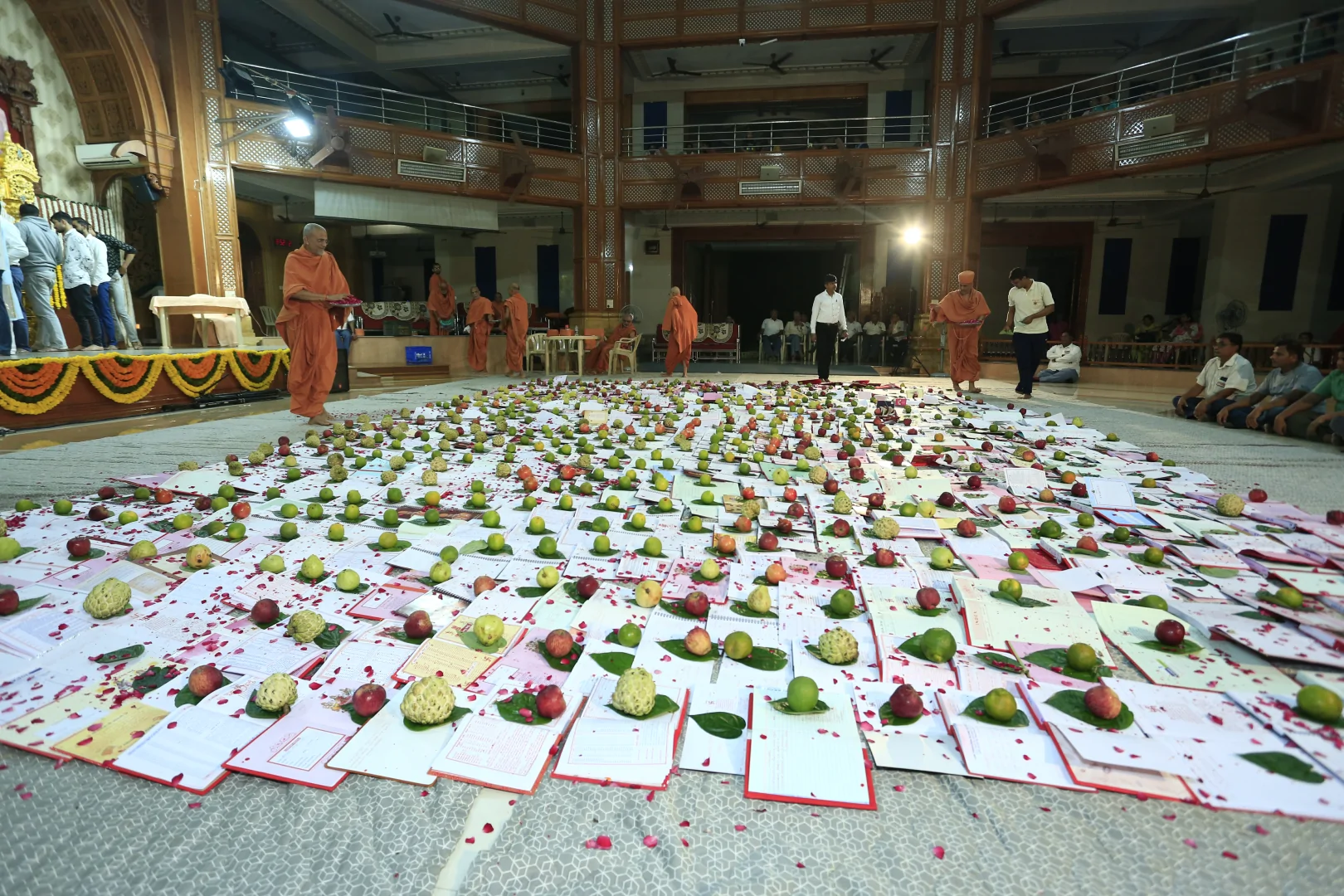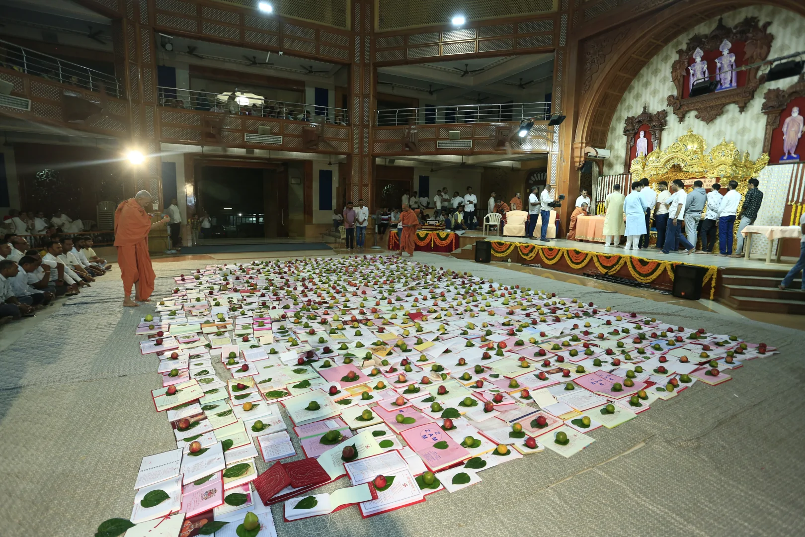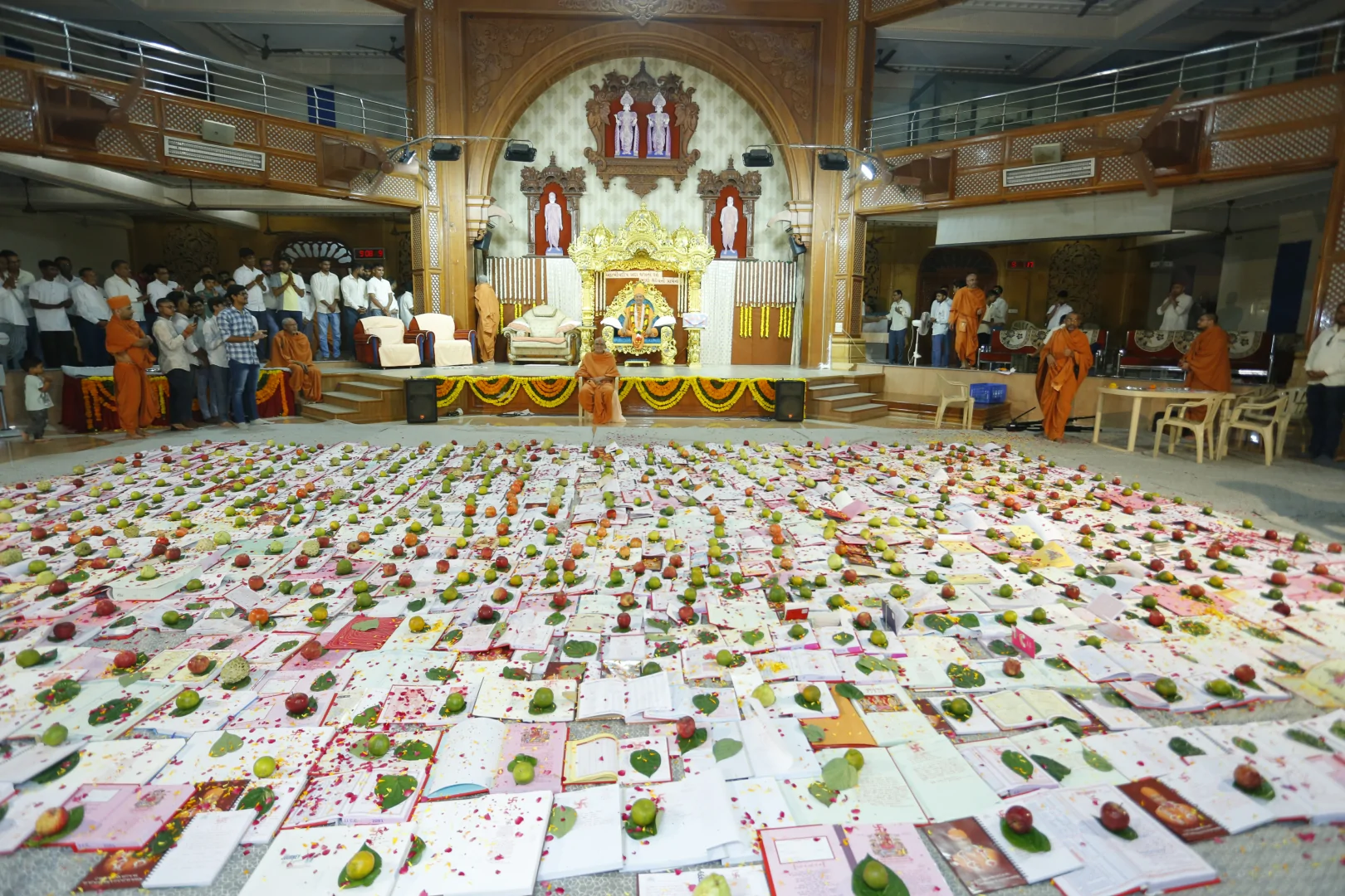 In HaridhamMandir very Large Annakoot of nearly 1500 items display is been arranged before every murti. Annakoot is the display of wide variety of foods in an attractive and artistic way. Over different varieties of food are decoratively arranged across feet wide. Sadhus, Sadhvis and dedicated devotees make these dishes early morning in Mandir. Very large no. of about 30,000 devotees every year come to participate celebration and for darshan of Annakoot and Prasad.